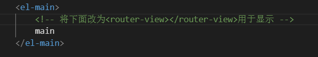 3.在需要展現(xiàn)頁面的位置添加<router-view>標簽,用于展示頁面。這里為了在main中展現(xiàn),所以需要將<router-view>標簽設置在<el-main>中,如下圖:
